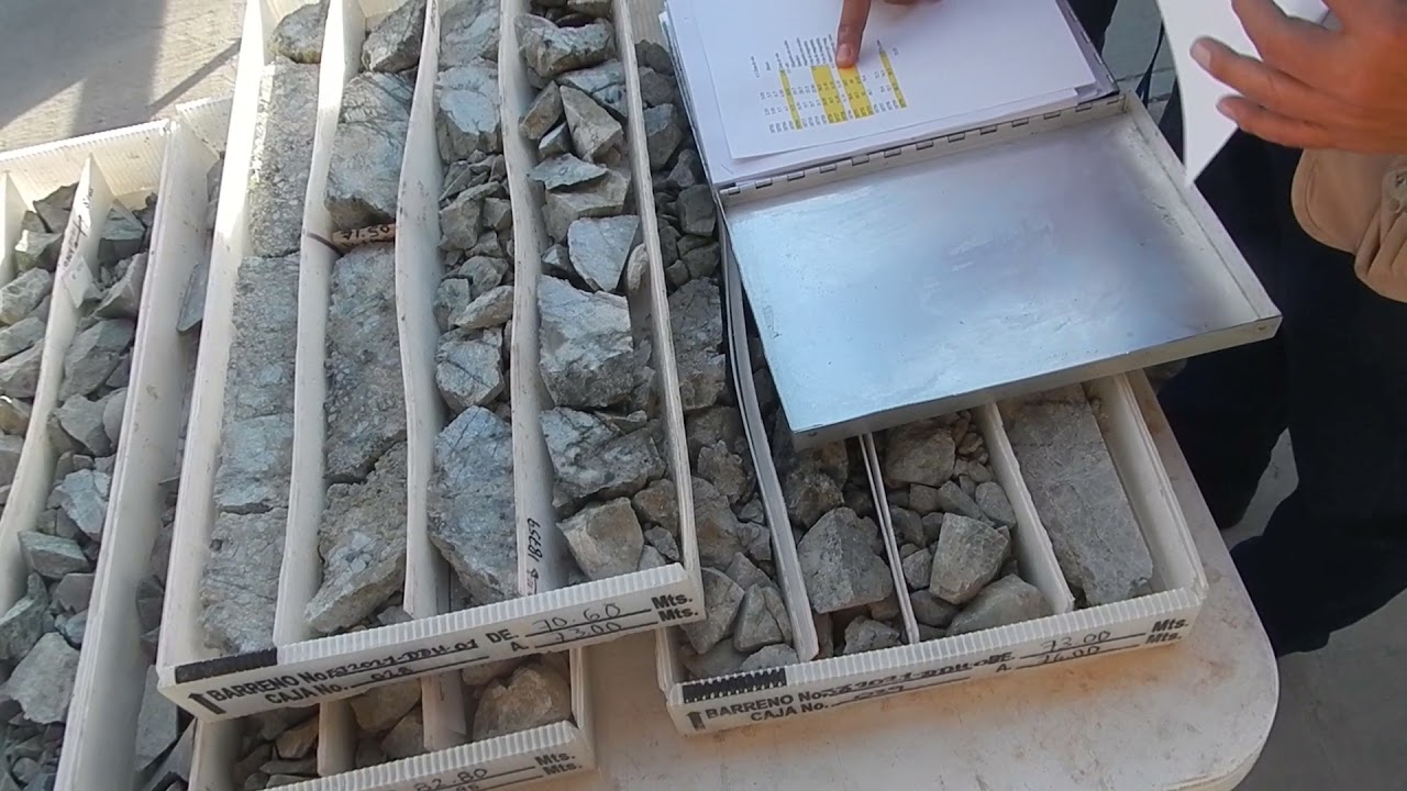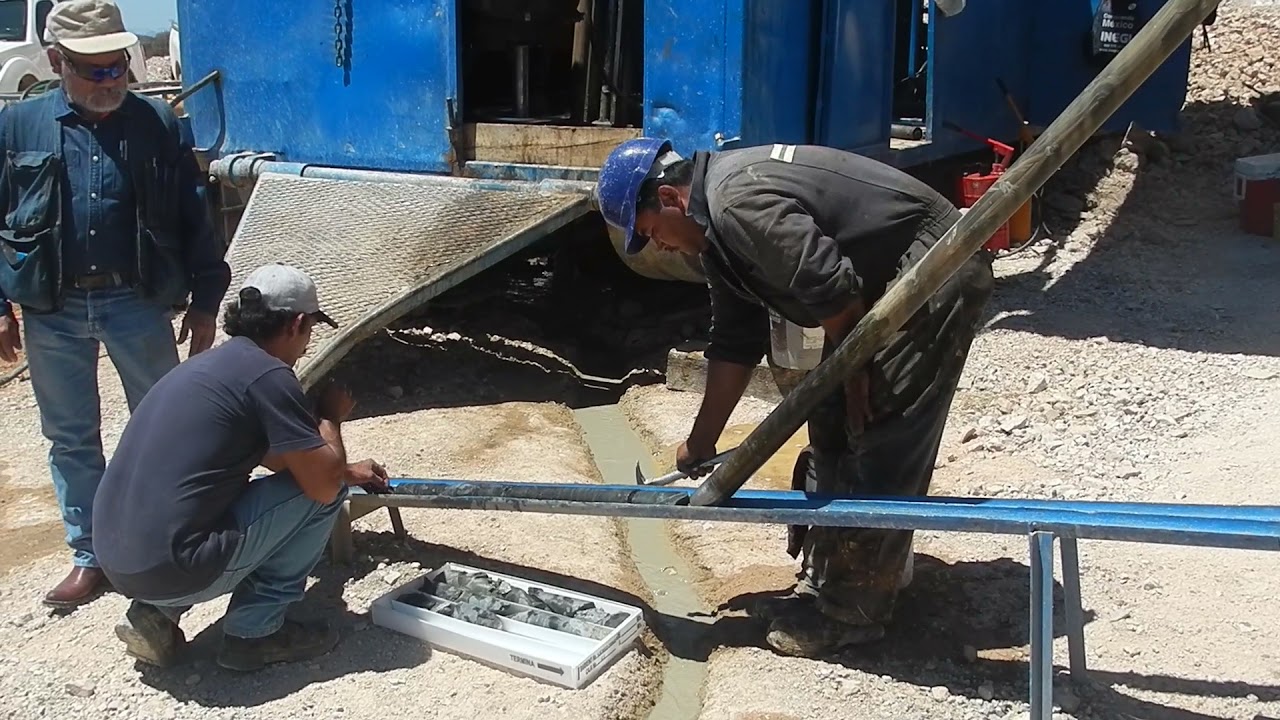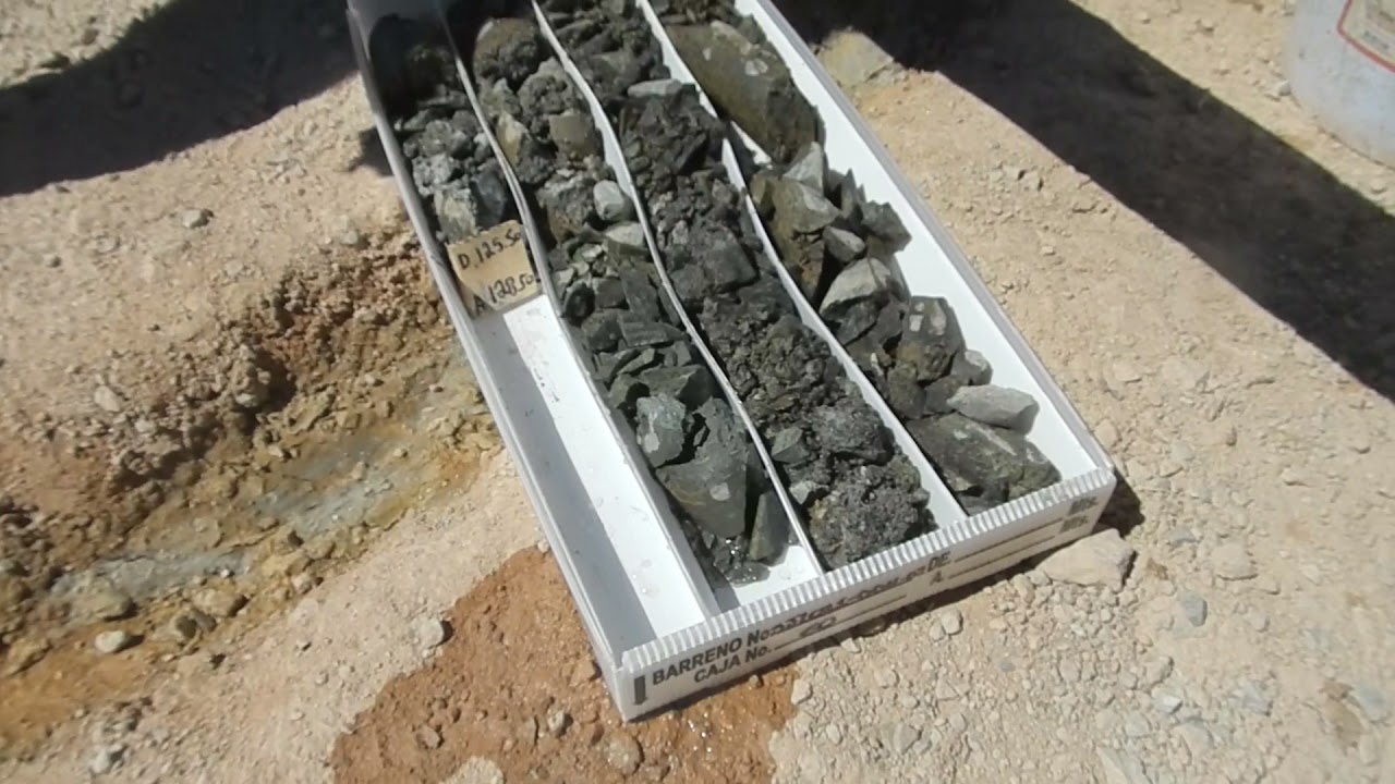 The videos below show drilling and perspective view of the ‘Silver Mountain Breccia Zone’. The breccia structure contains very high grades of silver which is found in magnetite veins. The high-grade magnetite veins were first identified with the sampling of artisanal mine workings that are found within the larger breccia structure.